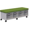 Fabric covered bench seat on top with storage below.
