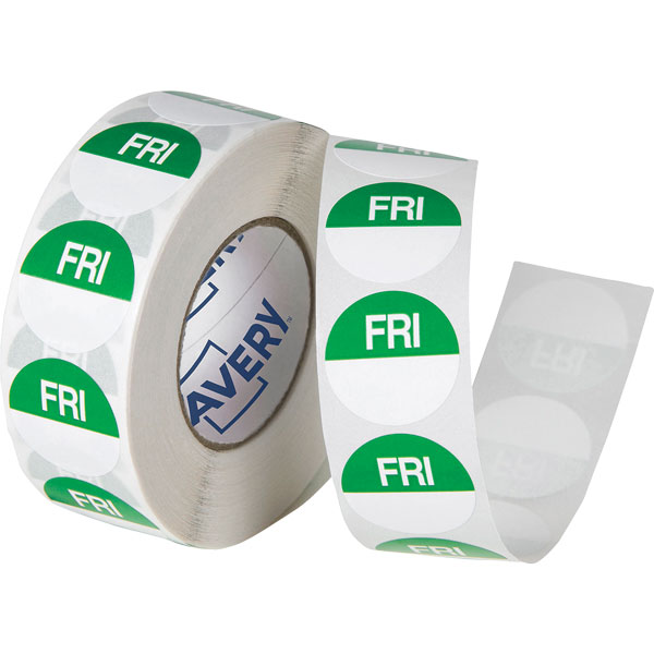 AVERY 937408 REMOVABLE DAY LABEL FRIDAY ROUND 24MM GREEN WHITE ROLL 1000