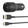 BELKIN BOOST CHARGE DUAL LIGHTNING TO USB-A CAR CHARGER CABLE 24W BLACK