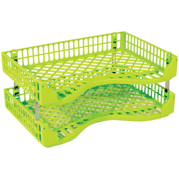 BIC DOCUMENT TRAY LANDSCAPE 395 X 260 X 60MM ACID GREEN PACK 2