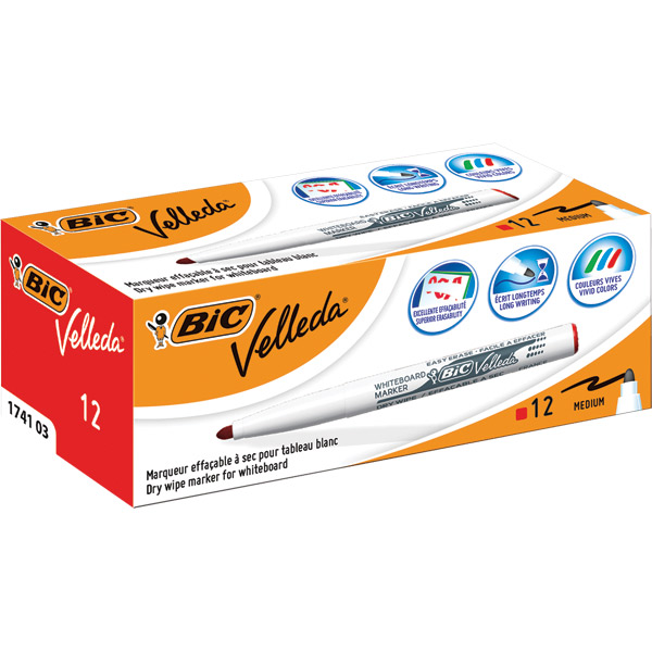 The BIC Velleda 1741 is a dry-wipe board marker which comes in a variety of bold colours.