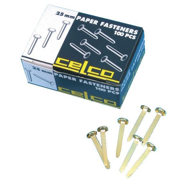 CELCO PAPER FASTENER 25MM BRASS BOX 100