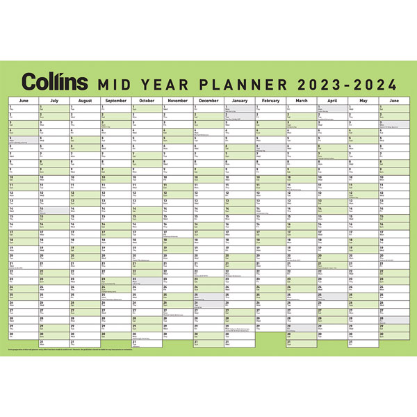 COLLINS MID YEAR WALL PLANNER LAMINATED A2 2023/2024