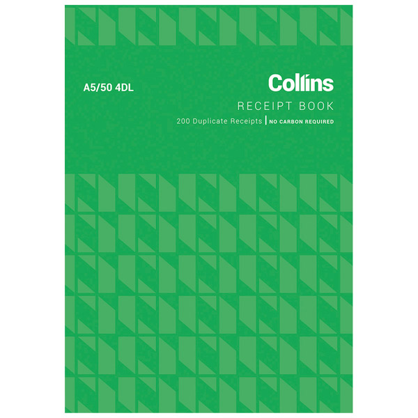 COLLINS RECEIPT BOOK 45 DL DUPLICATE NO CARBON REQUIRED W100 X L130MM 100 LEAF
