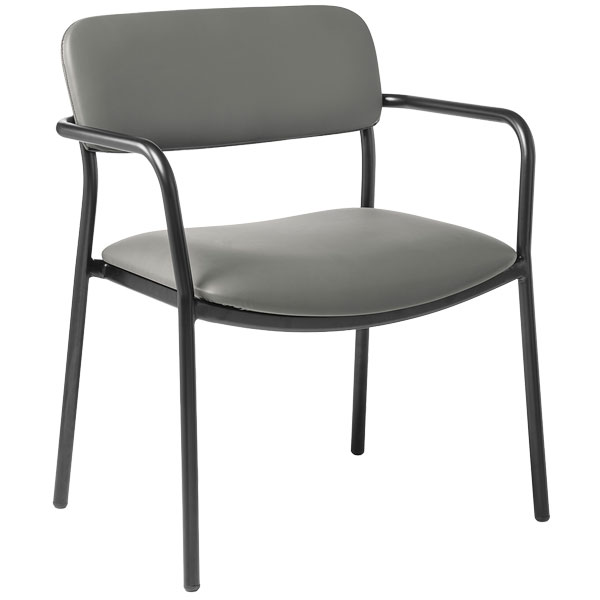EDEN FIT BARIATRIC VISITOR STACKER CHAIR BLACK FRAME WITH ARMS CHARCOAL VINYL