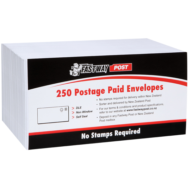 FASTWAY POST ENVELOPE POSTAGE INCLUDED PLAIN SELF SEAL 9S E13 W165 X L92MM WHITE PACK 250