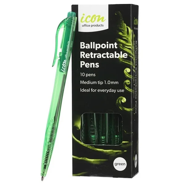 ICON BALLPOINT PEN RETRACTABLE MEDIUM GREEN PACK 10