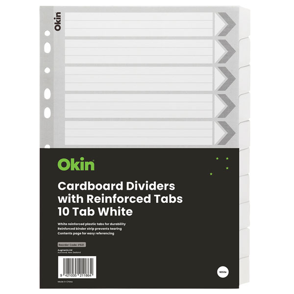 ICON CARDBOARD DIVIDER REINFORCED 10 TAB A4 WHITE