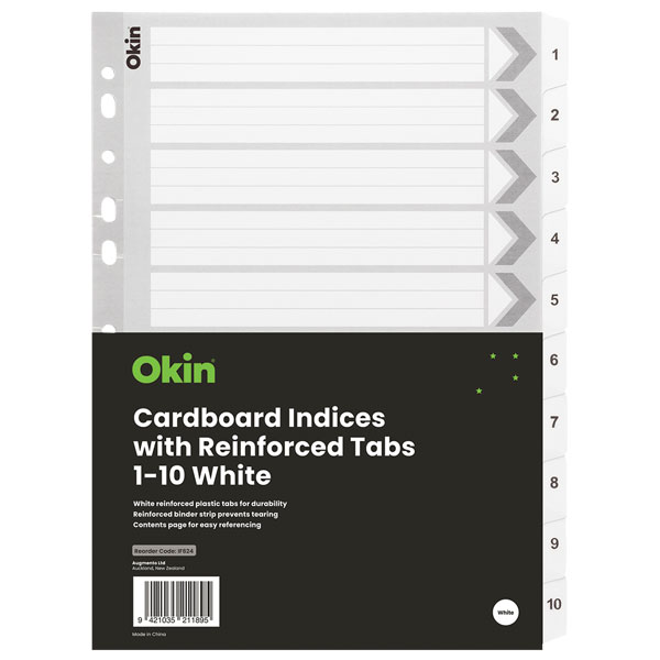 ICON CARDBOARD INDICES REINFORCED 1-10 TABS A4 WHITE