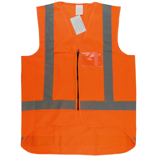 Orange high vis vest with reflective tape for safety in all conditions.
