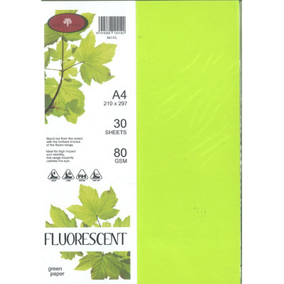 KASKAD COLOURED PAPER 210 X 297MM 80GSM BRILLIANT GREEN PACK 30