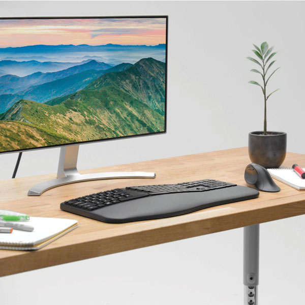 With its split and sloped keyboard with adjustable reverse tilt and built-in wrist rest, the ergonomist-approved Pro Fit Ergo Wireless Keyboard positions your hands for improved comfort