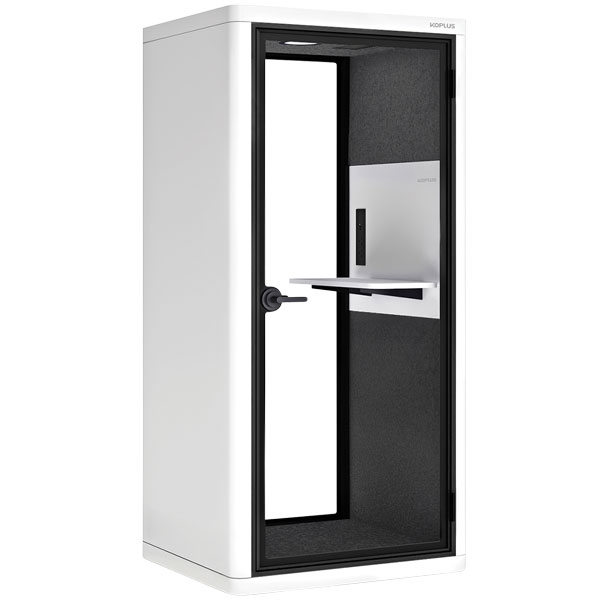 A purpose-built standing acoustic booth for quiet spaces and privacy.
