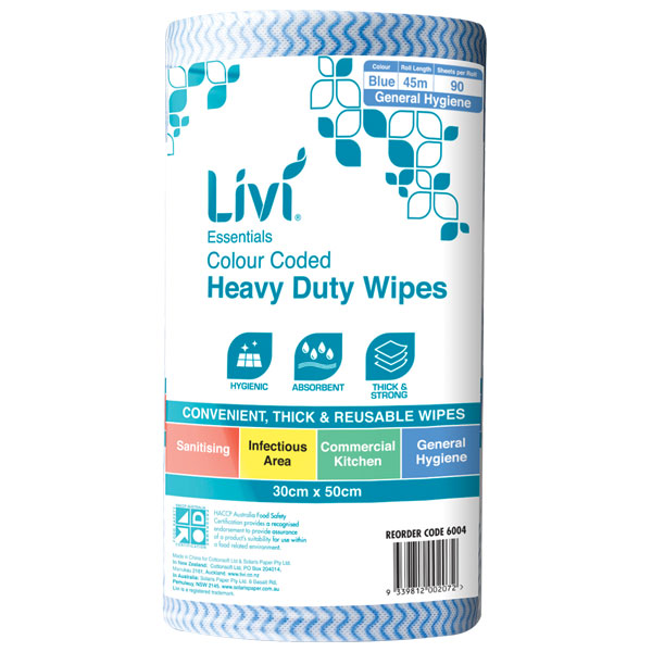 LIVI COMMERCIAL WIPES BLUE ROLL 90 SHEETS