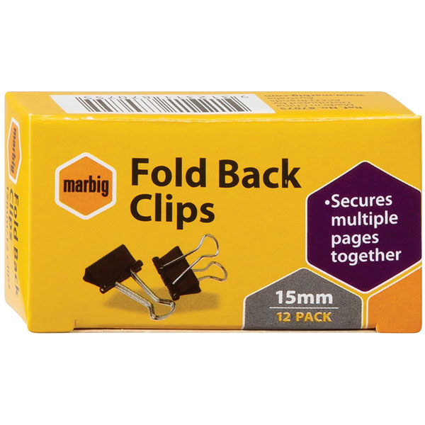 MARBIG FOLDBACK CLIP 15MM BOX 12