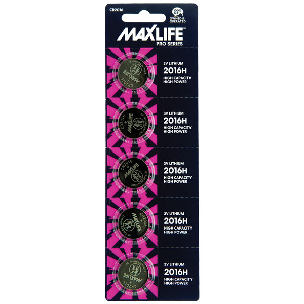 MAXLIFE BATTERY LITHIUM COIN CR2016 PRO SERIES PACK 5