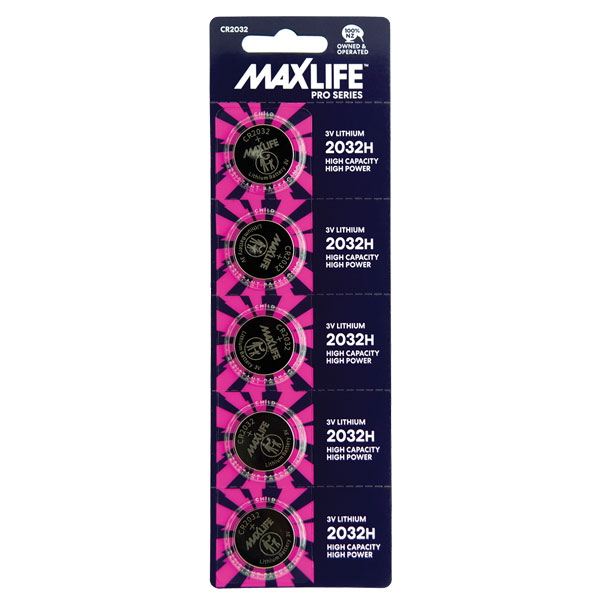 • Maxlife CR2032 Pro Series Lithium coin batteries are a High Capacity, High Power formula suited for Everyday and High Drain devices