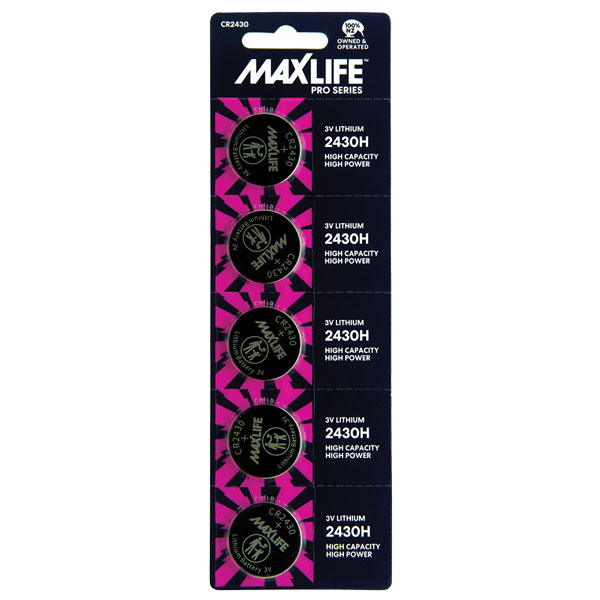 MAXLIFE BATTERY LITHIUM COIN CR2430 PRO SERIES PACK 5