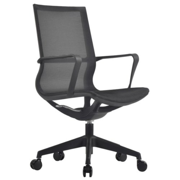 Featuring a uniquely curved one-piece frame with integrated seat and back in premium black mesh