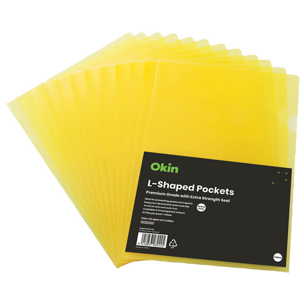 OKIN L-SHAPED POCKET A4 YELLOW PACK 12