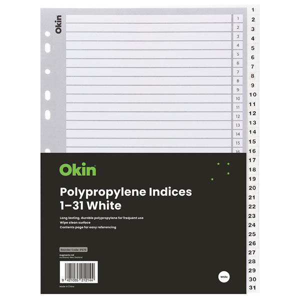 OKIN PP INDICES 1-31 TABS A4 WHITE