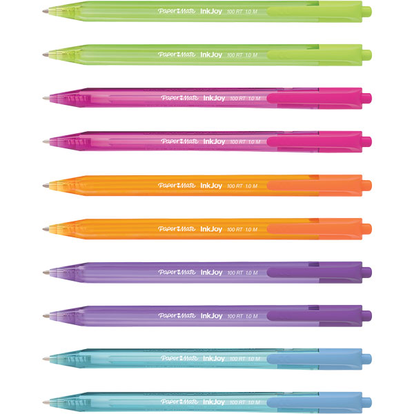 PAPERMATE INKJOY BALLPOINT PEN 100RT RETRACTABLE MEDIUM 1.0MM FASHION ASSORTED PACK 10