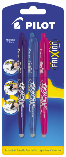 PILOT FRIXION ERASABLE 0.7MM LIGHT BLUE VIOLET PINK PACK 3