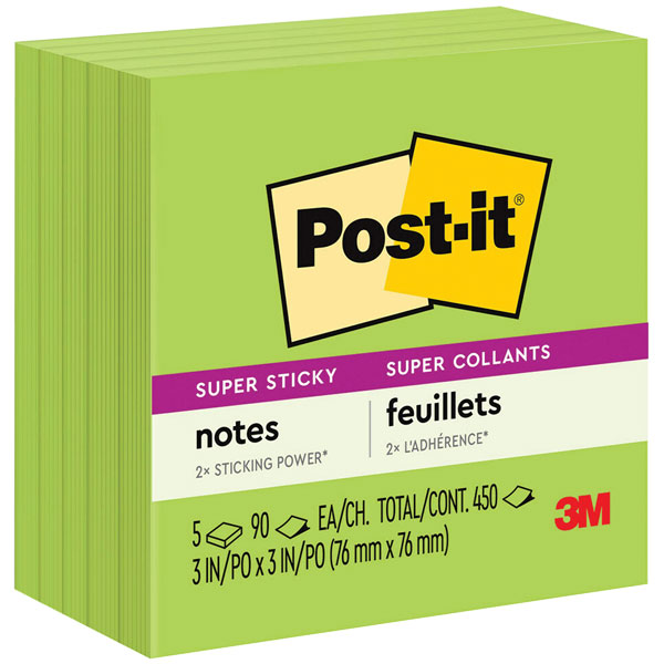 POST-IT 654-5SSLE SUPER STICKY NOTES 76 X 76MM LIME PACK 5