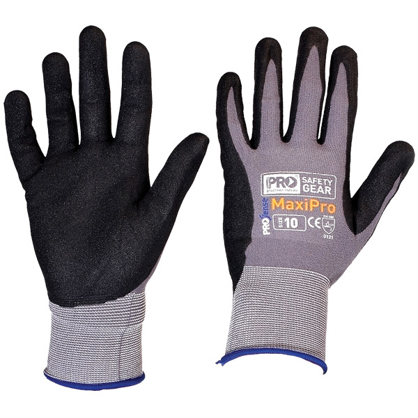 PROSENSE MAXIPRO NPN GLOVES PU/ NITRILE DIP ON NYLON/ LYCRA LINER SIZE 10 PAIR BLACK