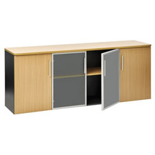 Credenza Pulse OC555 W1800mm Beech and Ironstone With 2 Glass Doors and 2 wood doors.