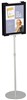 Quartet sign stand tranforms flyers into secure, sophisticated displays with a designer aluminum frame