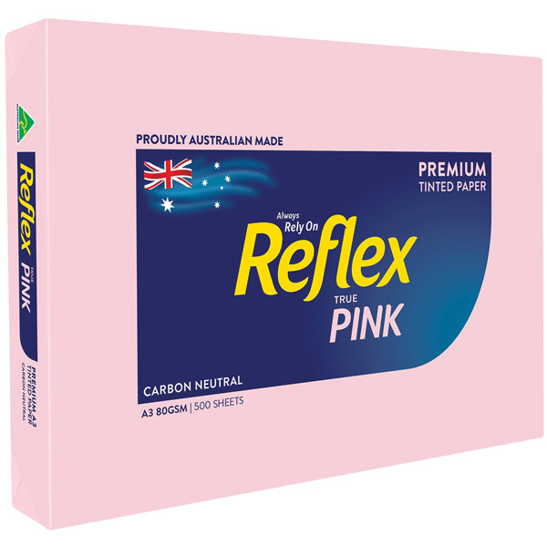 REFLEX COLOURS A3 COPY PAPER 80GSM PINK PACK 500 SHEETS