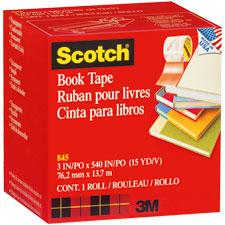 Scotch book tape 845 a tough crystal-clear transparent tape with a long-aging, synthetic adhesive that conforms readily to book contours and flexes with cover movements
