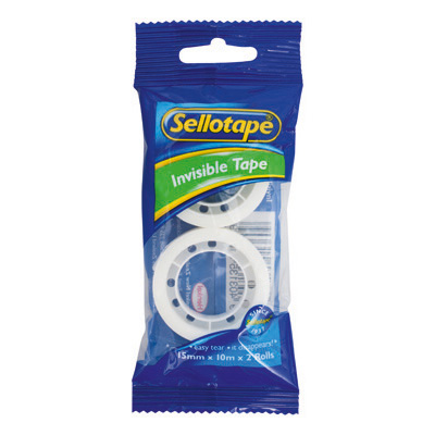 SELLOTAPE INVISIBLE TAPE ON DISPENSER W15MM X L10M TRANSPARENT PACK 2