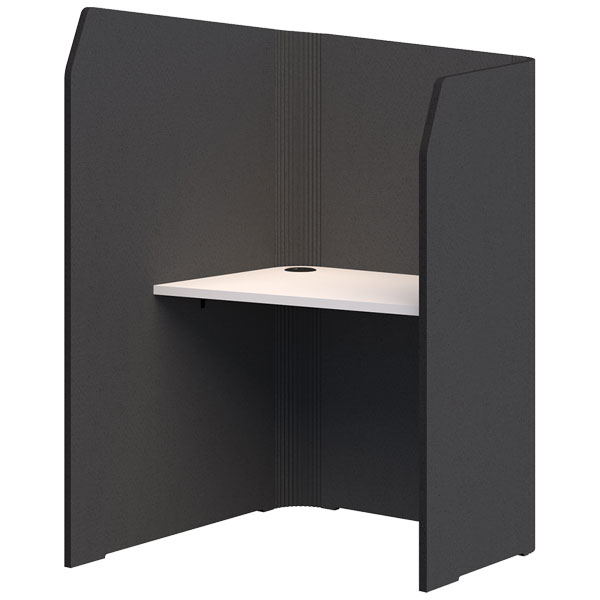Angled desk top faces user into the return wall for maximum privacy and acoustic performance