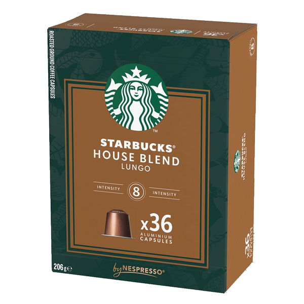 STARBUCKS COFFEE PODS HOUSE BLEND LUNGO BOX 36