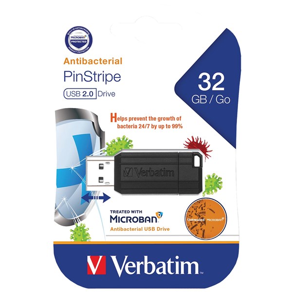 Verbatim USB drives now exclusively feature Microban antimicrobial technology to keep the USB drive surface cleaner for longer.