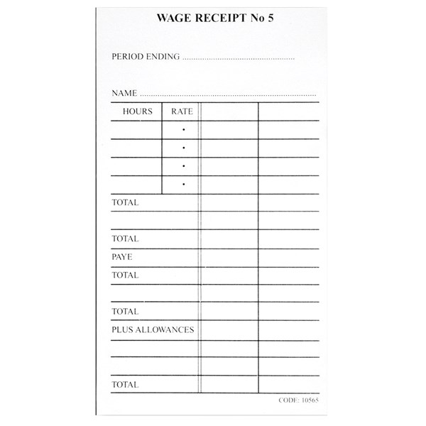 WAGE RECEIPT PAD NO.5 70GSM W84 X L150 MM 80 LEAF WHITE