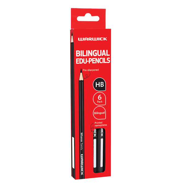 WARWICK BILINGUAL PENCIL HB HEXAGONAL WITH NAME PLATE PACK 6