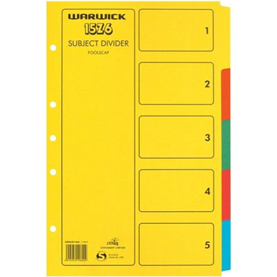 WARWICK CARDBOARD 15Z6 DIVIDER 5 TAB FOOLSCAP COLOURED